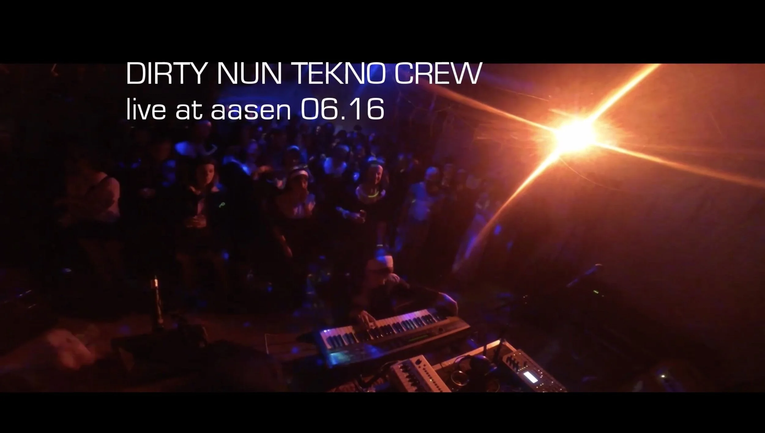 Dirty Nun Tekno Crew was a live techno and performance duo based in Copenhagen active between 2015-2017 and made up of Mija Milovic and Danielle Dahl. They made ritualistic, fun and communal techno sermons with a big organ on stage, communions with alien dildos, liquid Marsmellow and Malibu Rum, usually with both audience and performers dressed in full nun costume